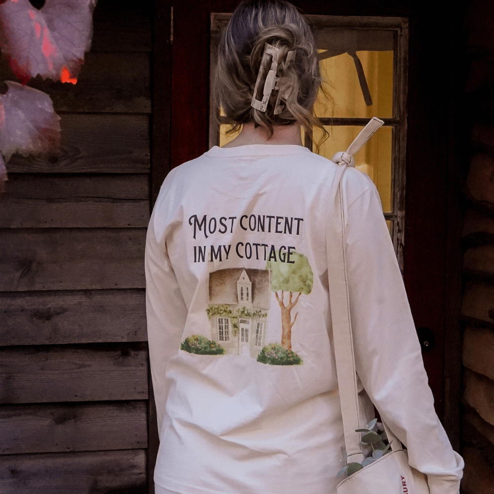 A gentle ode to slow mornings and countryside dreams, our Content in My Cottage long sleeve tee is made for those who find joy in the quiet, the cozy, and the well-loved corners of home.
